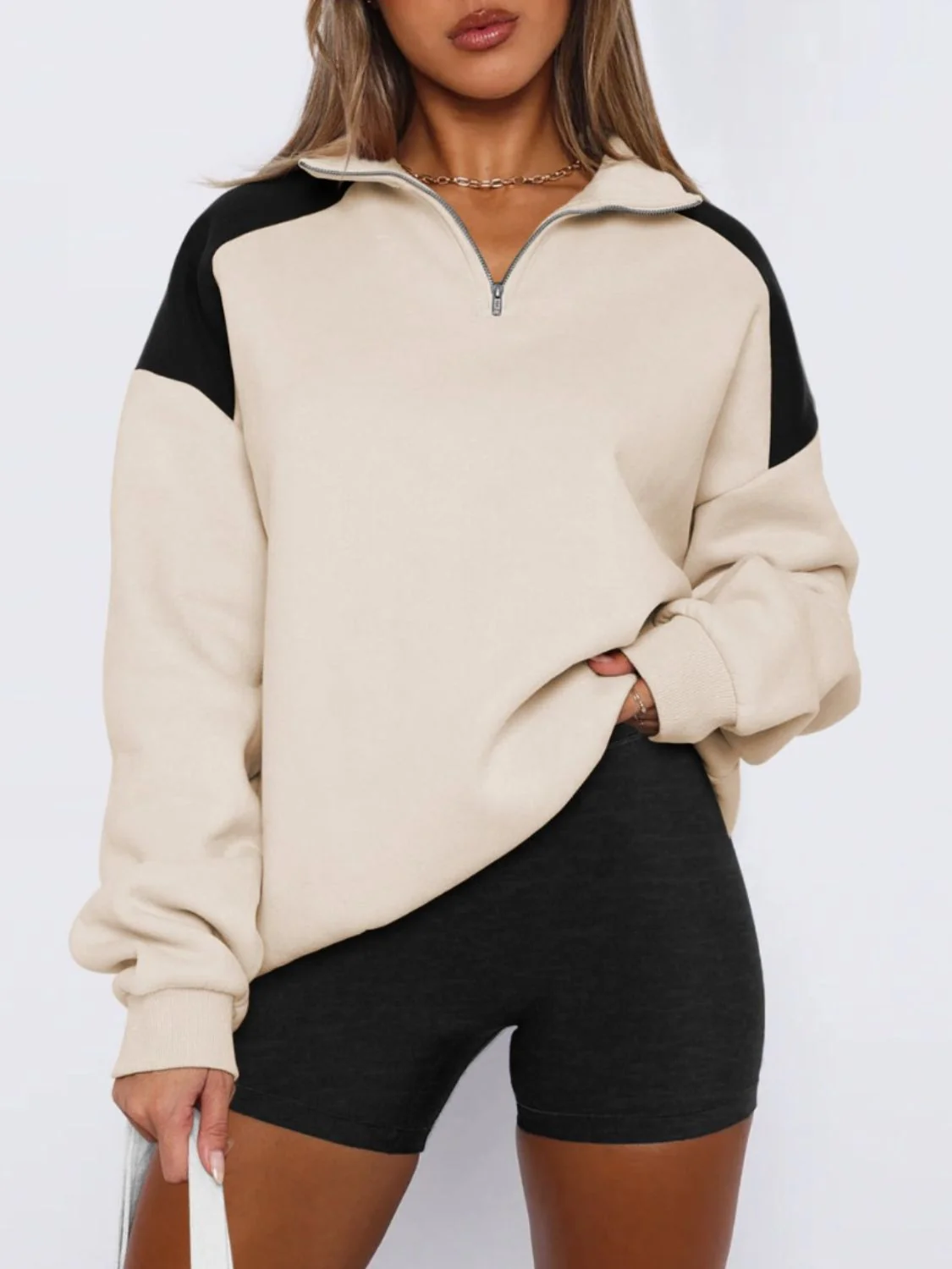 Contrast Quarter Zip Long Sleeve Sweatshirt