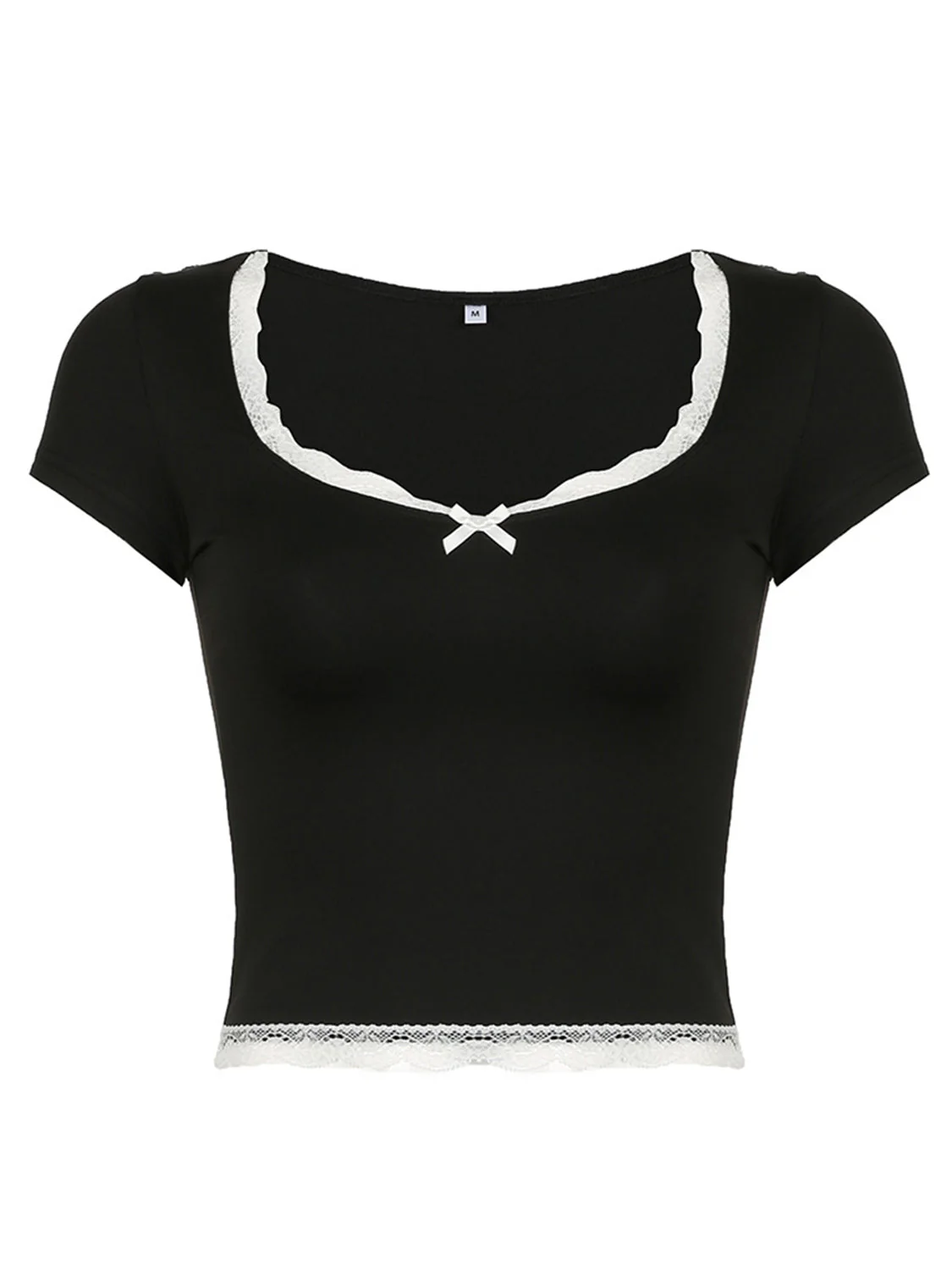 Lace Detail Sweetheart Neck Short Sleeve Top
