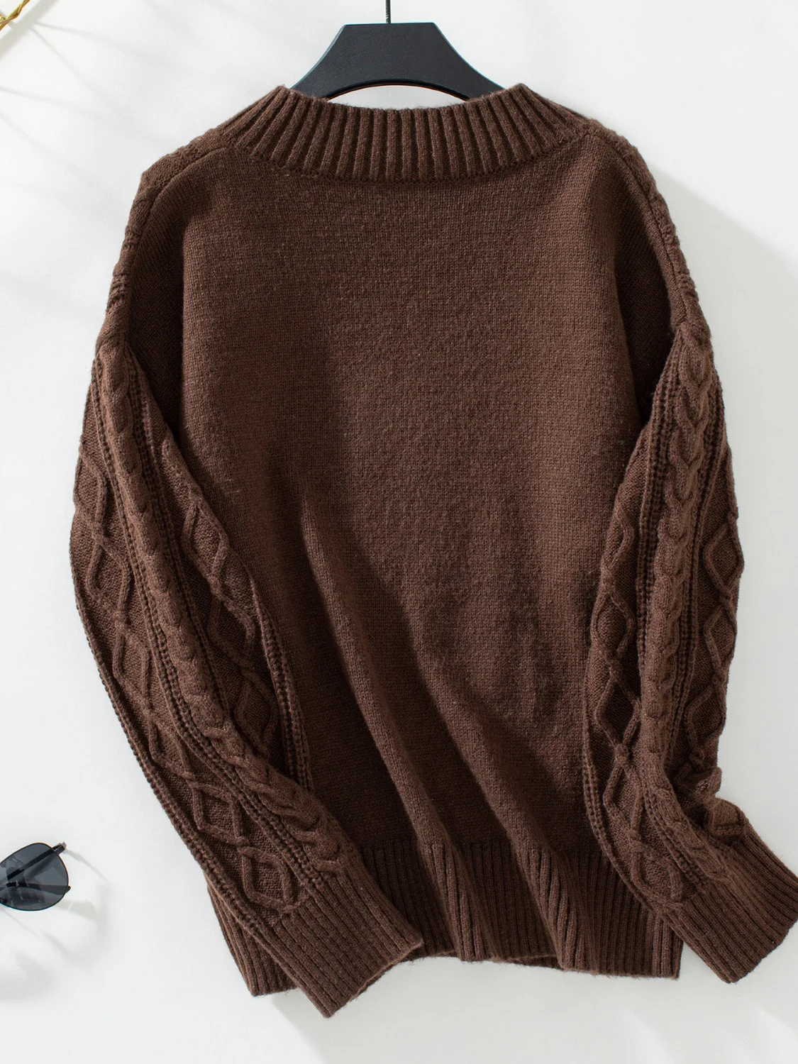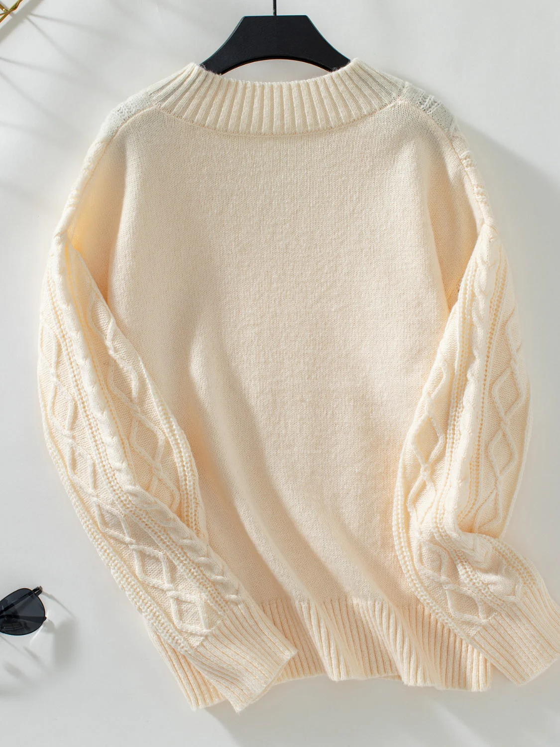 Cable-Knit Notched Long Sleeve Sweater