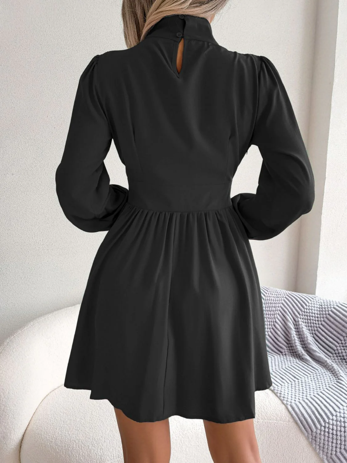 Introducing the Cutout Turtleneck A-Line Mini Dress