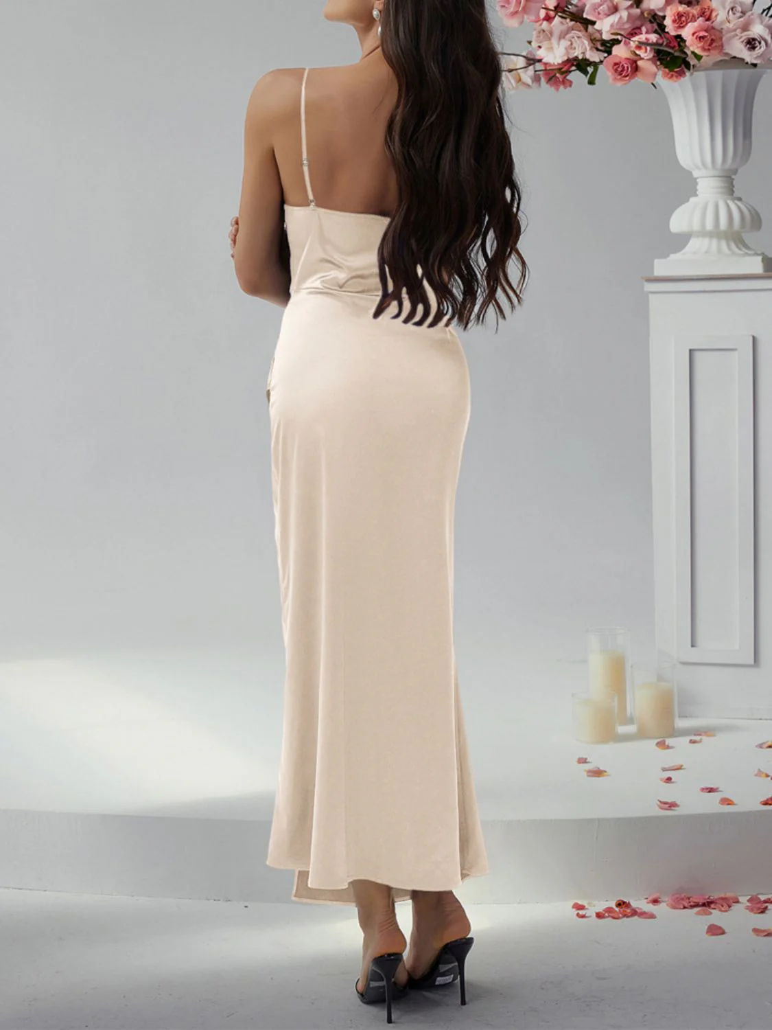Indulge in the ultimate expression of elegance and femininity with our Devine Slit Ruched Maxi Cami Dress. This stunning piece will make you feel like a goddess, with its delicate slit and sheer fabric that adds a touch of sensuality to your look. The dress is made from a luxurious blend of 92% polyester and 8% elastane, ensuring a comfortable and flattering fit. The dress features a ruched design that accentuates your curves and adds a romantic touch to the overall look. The body is not lined, allowing for a subtle hint of skin to peek through, while the opaque fabric provides just the right amount of coverage. The dress is perfect for any occasion, whether it's a romantic dinner date or a special event. With its no-stretch fabric, the dress maintains its shape and structure, making you look effortlessly chic and put-together. The care instructions are simple, just machine wash cold and tumble dry low, making it easy to maintain the dress's pristine condition. This dress is imported and comes in a range of sizes, with detailed measurements provided for your convenience. Choose from sizes S, M, L, and XL, with a size conversion chart to help you find your perfect fit. Embrace your inner goddess and add a touch of romance to your wardrobe with our Devine Slit Ruched Maxi Cami Dress. Elevate your style and make a statement with this must-have piece.