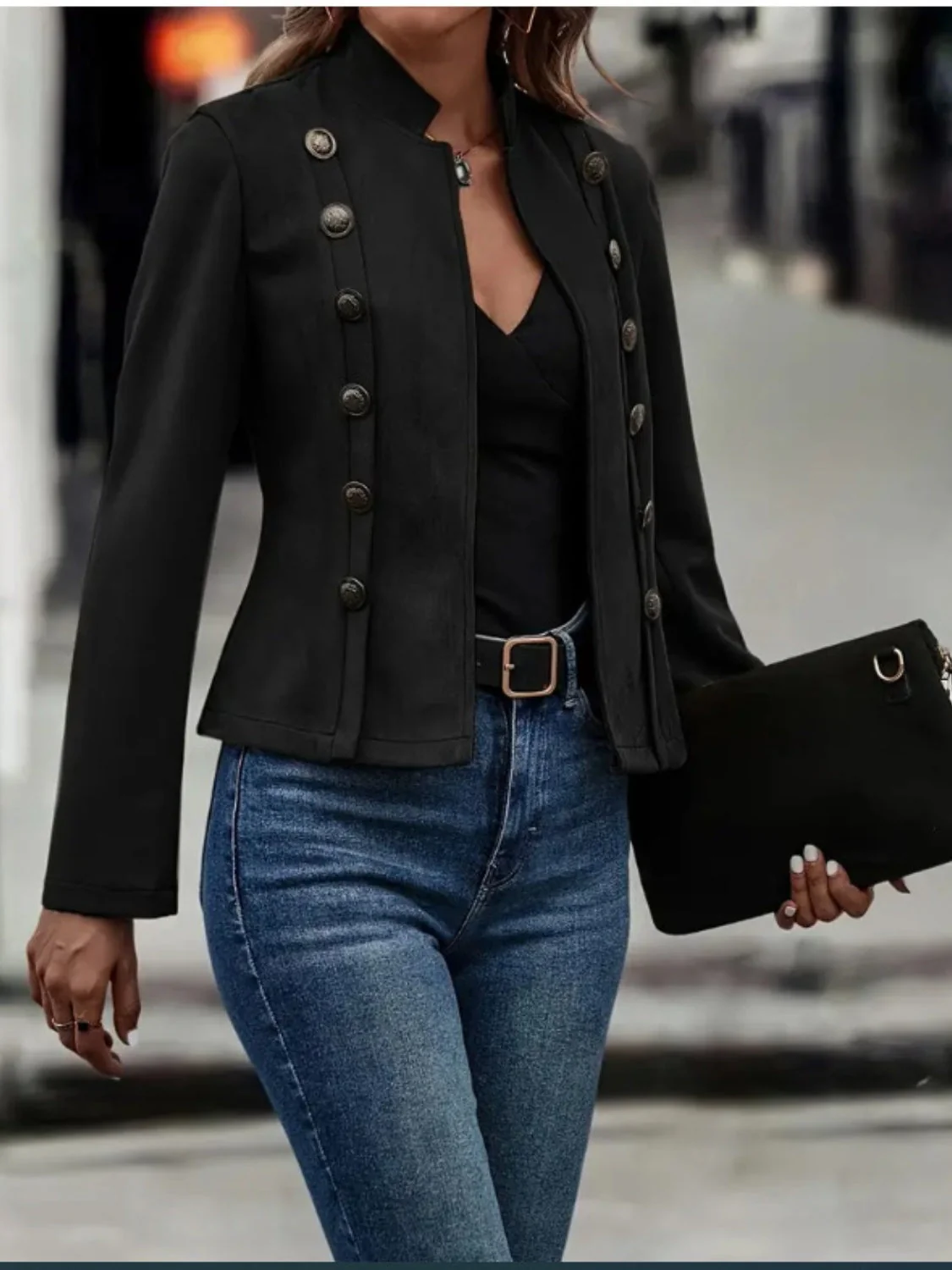 Introducing our latest addition to the expokite collection - the Open Front Long Sleeve Jacket. This unique jacket features a stunning open front design with decorative buttons, adding a touch of elegance to any outfit.
