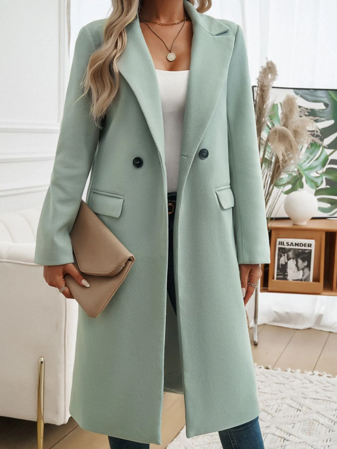Introducing the Pocketed Collared Neck Long Sleeve Coat, a must-have addition to your wardrobe from expokite.