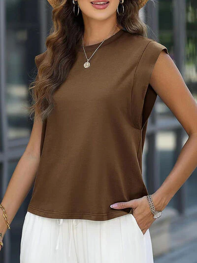 This top is incredibly easy to style, so you can mix and match it with your favorite pieces. Pair it with jeans for a relaxed weekend look, or tuck it into a skirt for a more polished appearance at work. You can also layer it under a blazer for chilly evenings. The possibilities are endless because the Round Neck Cap Sleeve Top works well with almost any outfit. Choose your favorite color and make it your go-to piece!