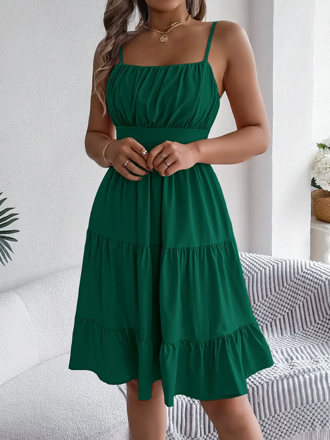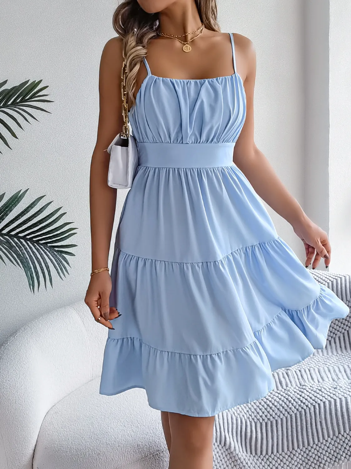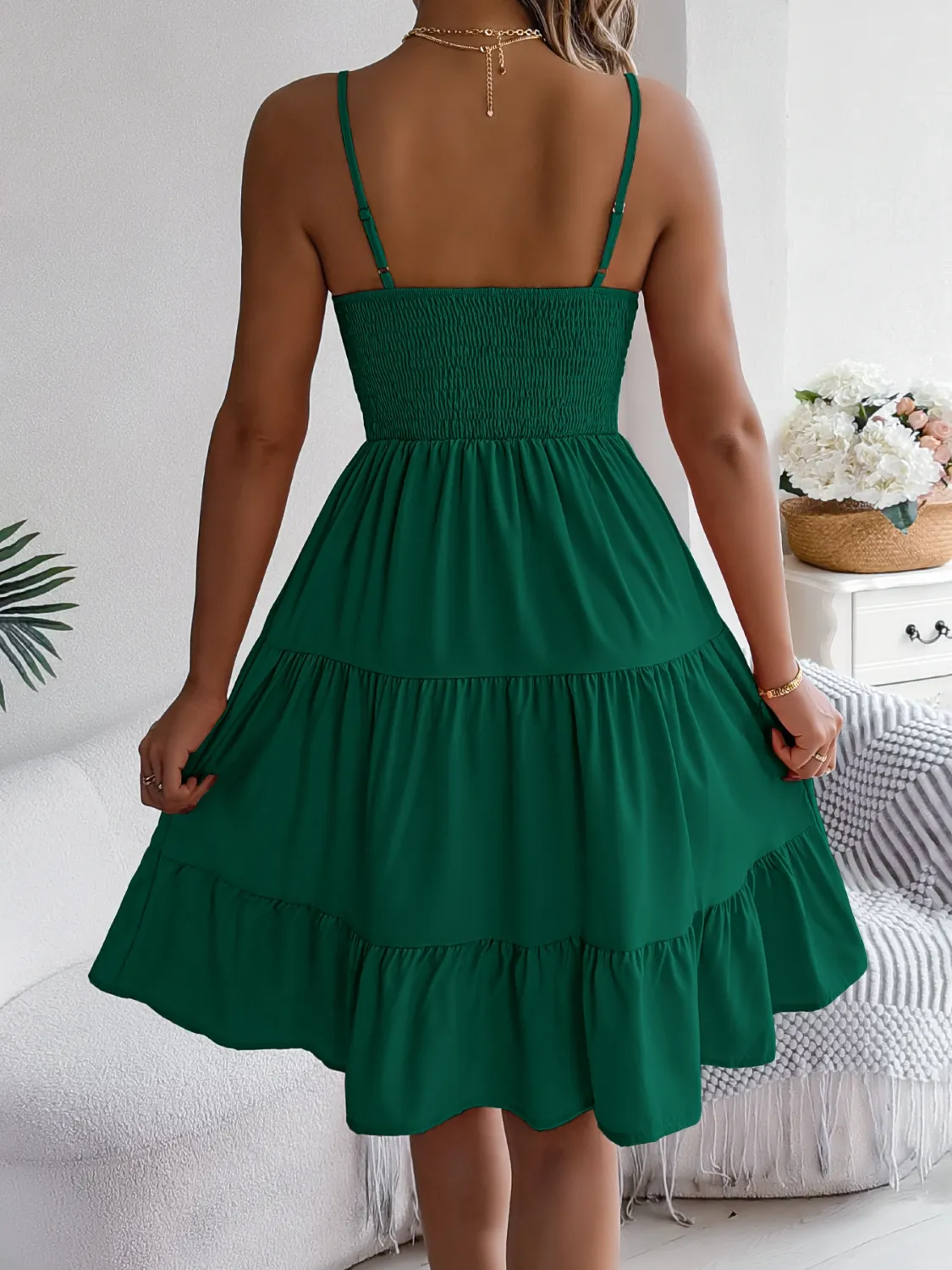To keep your Smocked Back Tiered Cami Dress looking fabulous, take care of its fabric. Wash it gently in cold water and hang it to dry. Avoid harsh detergents to maintain its color and texture longer. Because proper care enhances durability, your investment will pay off with repeated wear. This way, you can enjoy stylish comfort for many seasons ahead.